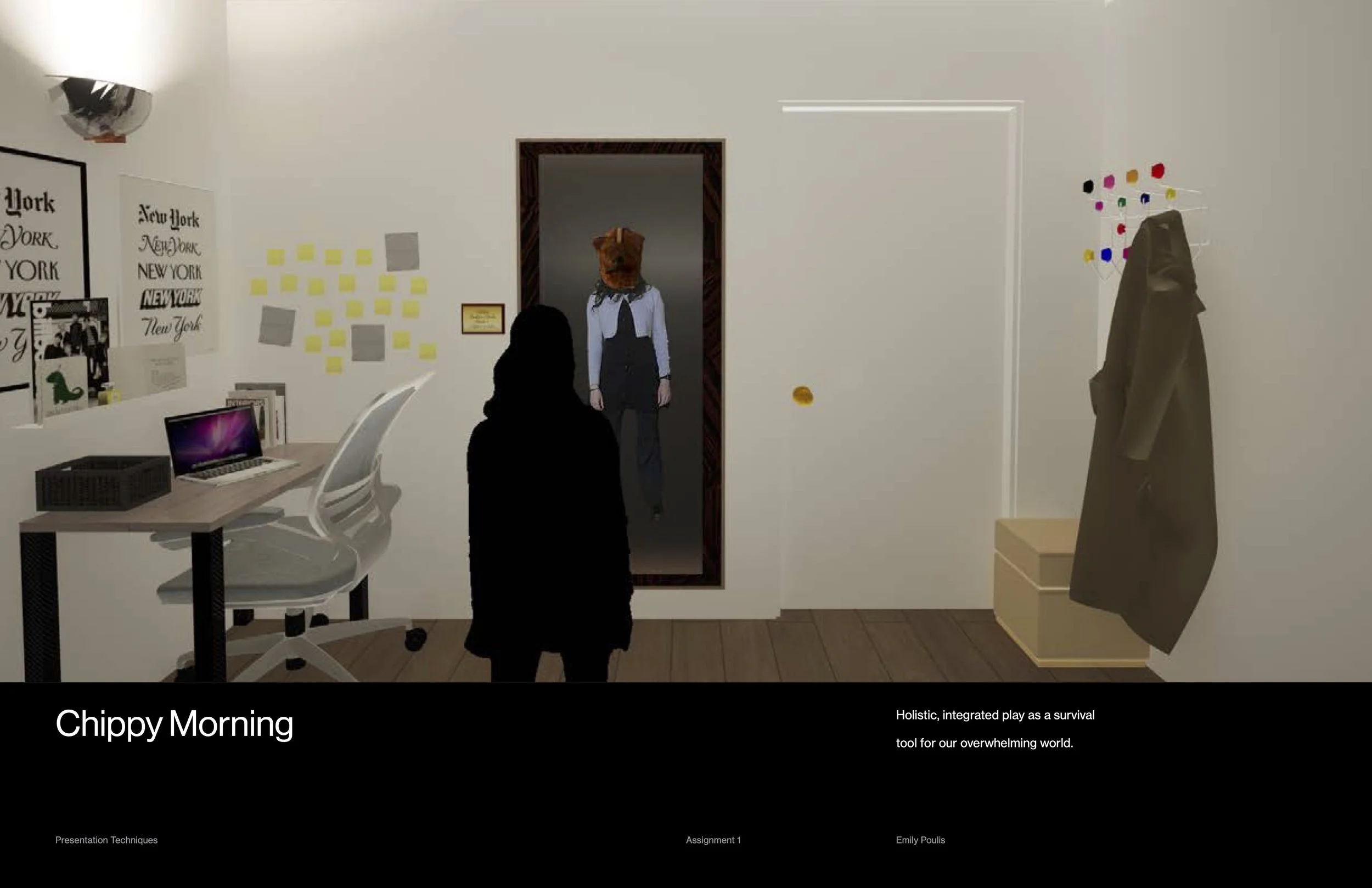 Chippy Morning is a small-scale, in-home experience that uses playful design to shift mood and mindset. This quirky papier-mâché sculpture is a daily prompt to embrace lightness, spark imagination, and mentally reset, turning a moment of departure into a playful ritual of self-care.